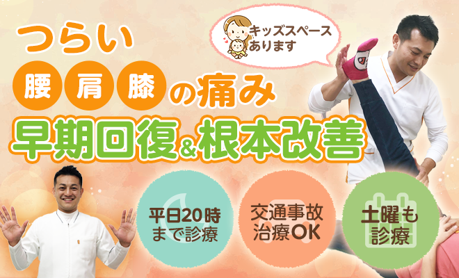 平日は、夜8時まで!土曜も営業しています!交通事故の施術は平日夜9時まで!
